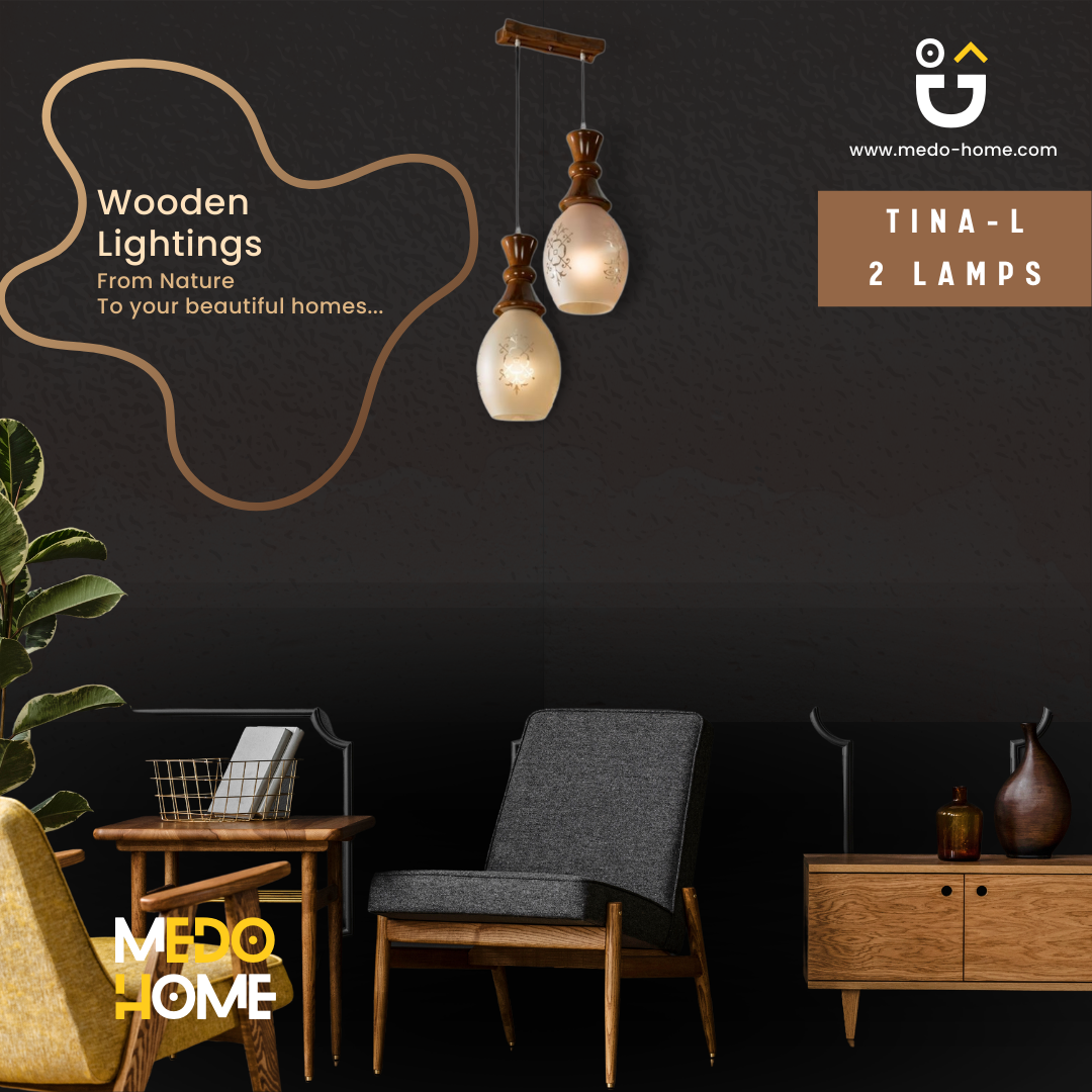 سبک ساده آویز مدل تینا خطی ۲ شعله باعث زیبایی و ست کردن بسیار راحت با انواع وسایل منزل است. آویز چوبی با ۲ شعله مدل تینا بسیار برای آشپزخانه هایی با متراژ  ۱۸ متر مناسب است. البته شما می‌توانید این آویز رو در قسمت‌های دیگر منزل یا ویلا و محل کار هم استفاده کنید . ارتفاع کابل این آویز هم قابل تنظیم است .