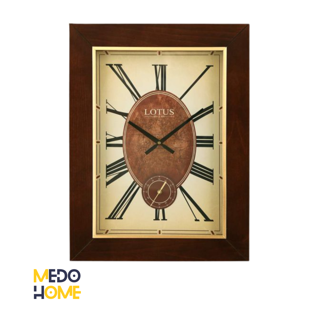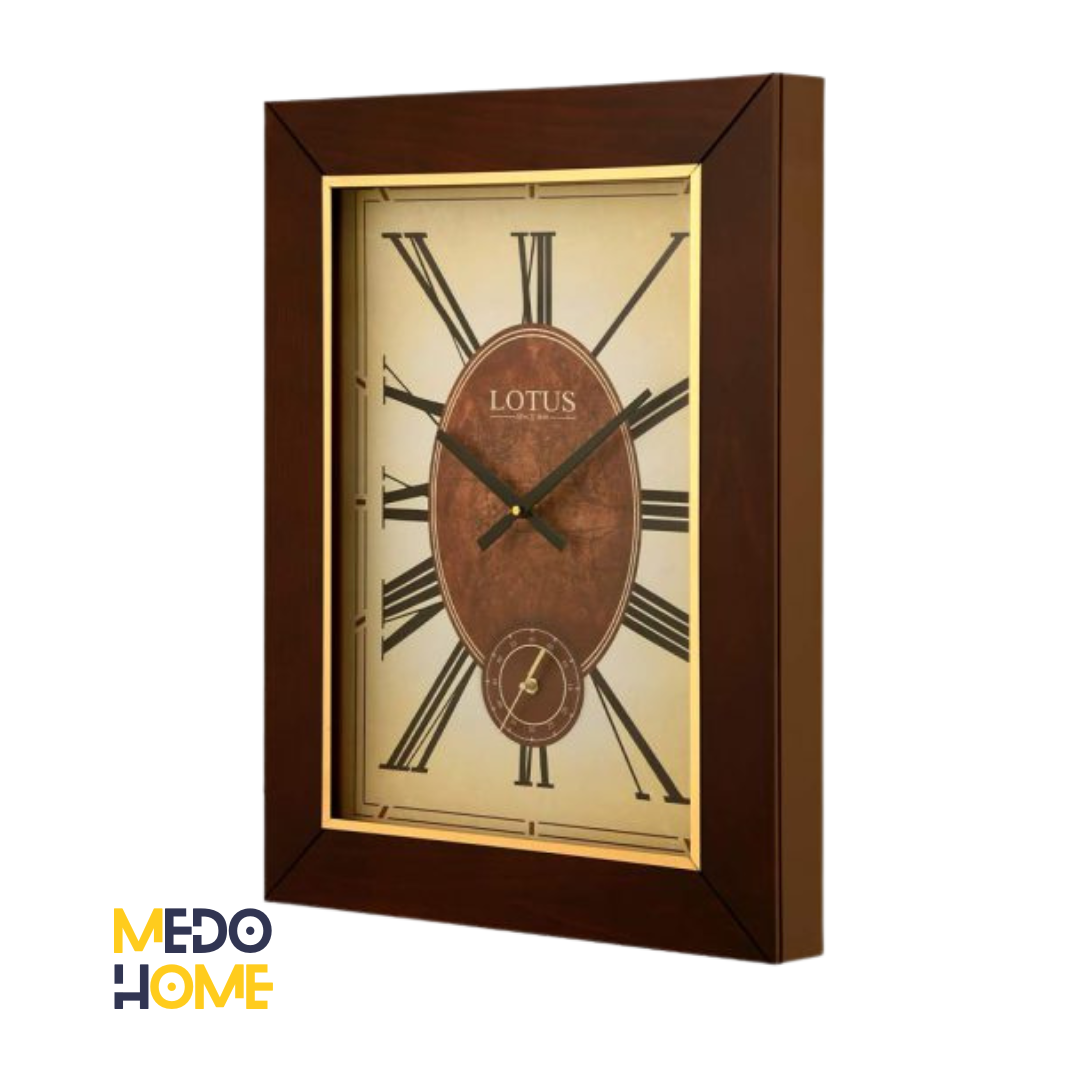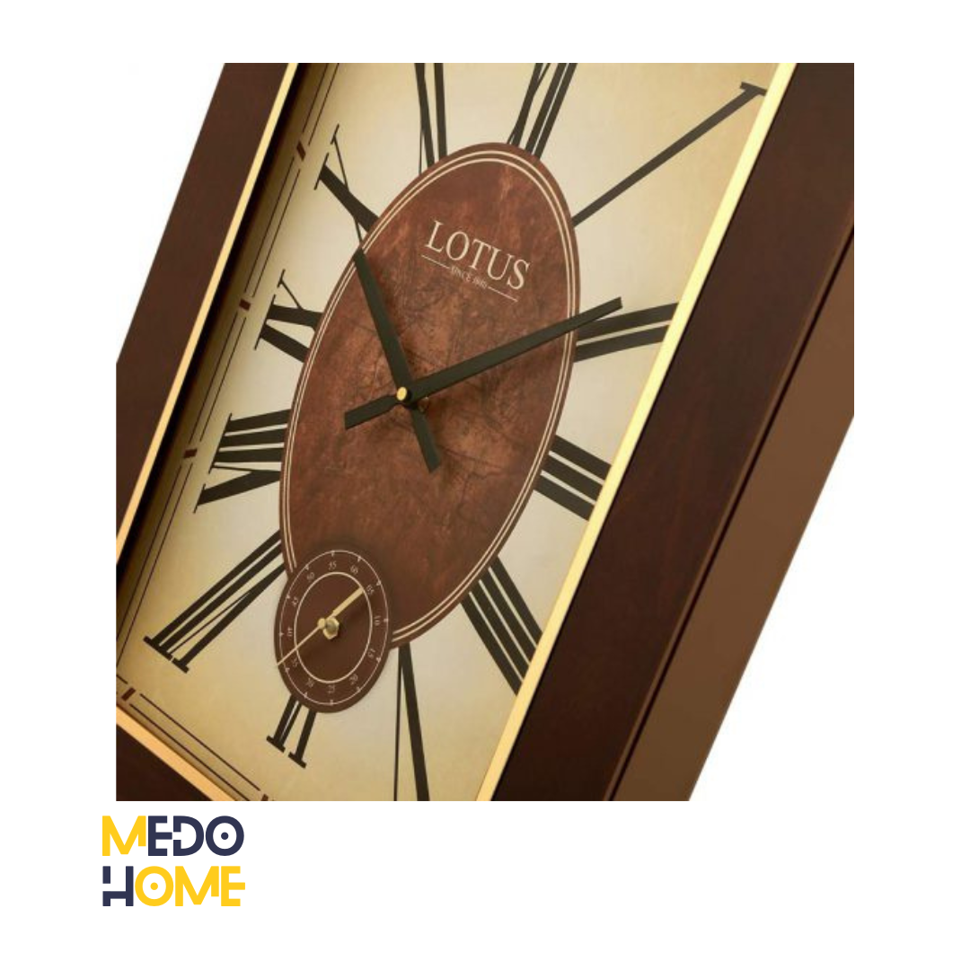 لوتوس ساعت دیواری چوبی SKANDIA را به صورت دو موتوره طراحی کرده است. بك گراند صفحه به رنگ کرم است كه در ترکیب با فریم چوبی بسیار زیبا دیده می شود. زه فلزي طلايي روي فريم مثل يك قاب دور صفحه عمل كرده است. و باعث شده صفحه زيباتر شود و فریم ساعت دیواری چوبی SKANDIA از سادگی خارج شود.
