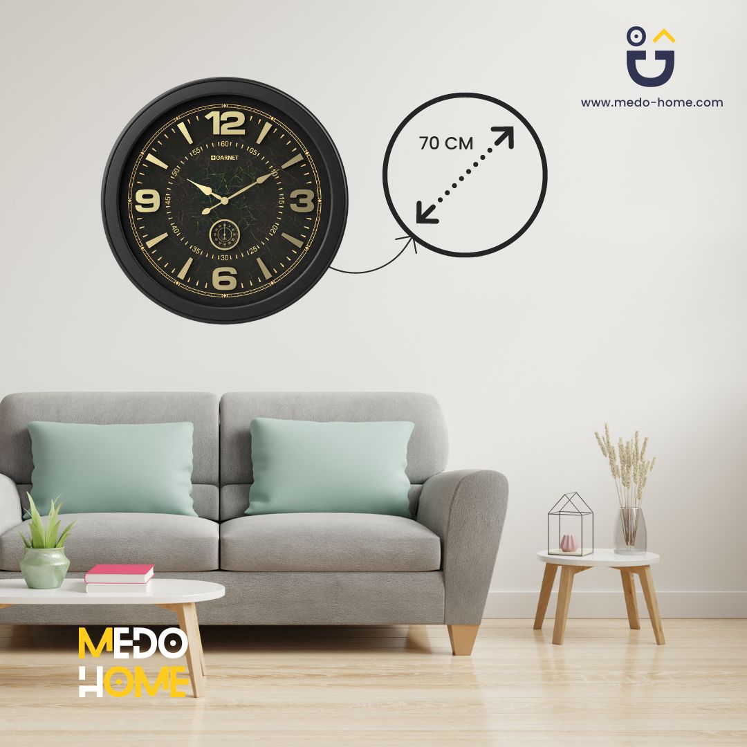 ساعت دیواری گارنت مدل ۵۴۷۳ یک ساعت بسیار شیک با اعداد بزرگ و خوانا و همچنین قطر ۷۰ سانتی متر می‌باشد. این ساعت با استایل خاصی که دارد میتواند به زیباتر شدن محیط زندگی با محل کار شما بیفزاید. همچنین در این ساعت از موتور آرام گرد تایوان استفاده شده که حرکت عقربه های ساعت را بی صدا می کند.