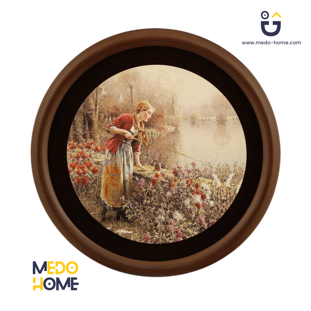 تابلوی فریم سنگی و ورق طلا با نام “دختر ماهیگیر بریتانی” (Brittany Girl Fishing) یک اثر هنری از هنرمند معروف Daniel Ridgway Knight را در سایز 64 سانتی متر نشان میدهد. در این تابلو که تولید شرکت لوتوس هست از ورق طلا و یک فریم سنگی بسیار باکیفیت استفاده شده تا جلوه و زیبایی این نقاشی را چند برابر کند. درخشش قسمت های طلایی و زرد بسیار چشم نواز است.